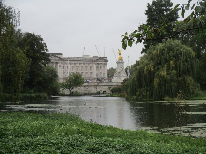 St James’s Park is the oldest of London’s royal parks, named for a leper hospital that was on the site in the thirteenth century. Even though it was raining cats and dogs I decided to take a walk through the park and up to Buckingham Palace.