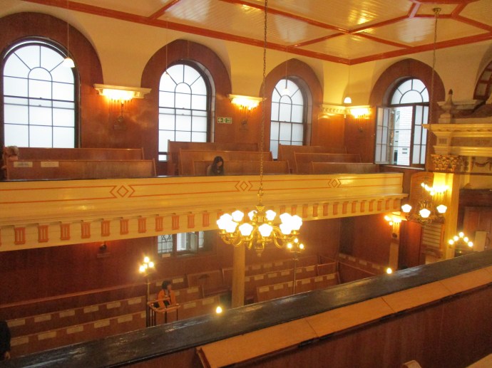 Many of the original features of the Georgian interior were kept including the balcony which you were allowed to to sit in and which became the women’s section. It was surprisingly light and airy given its relatively small size aided no doubt by the white paint scheme and clear glass windows.