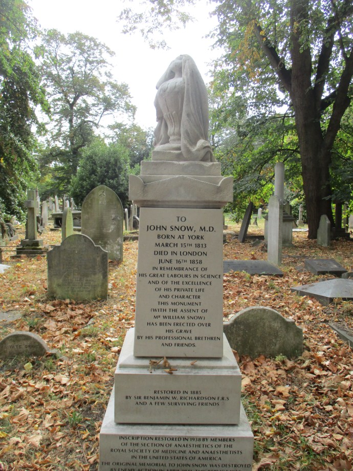 The monument to Dr John Snow who proved that cholera was spread by infected drinking water, having traced the source of a cholera outbreak in Soho in 1854 which killed 616 people. He was also an expert in anaesthetics and even administered anaesthesia to Queen Victoria for the births of two of her children. The monument was damaged by a bomb in World War II and restored in 1951 which is why it looks so new.