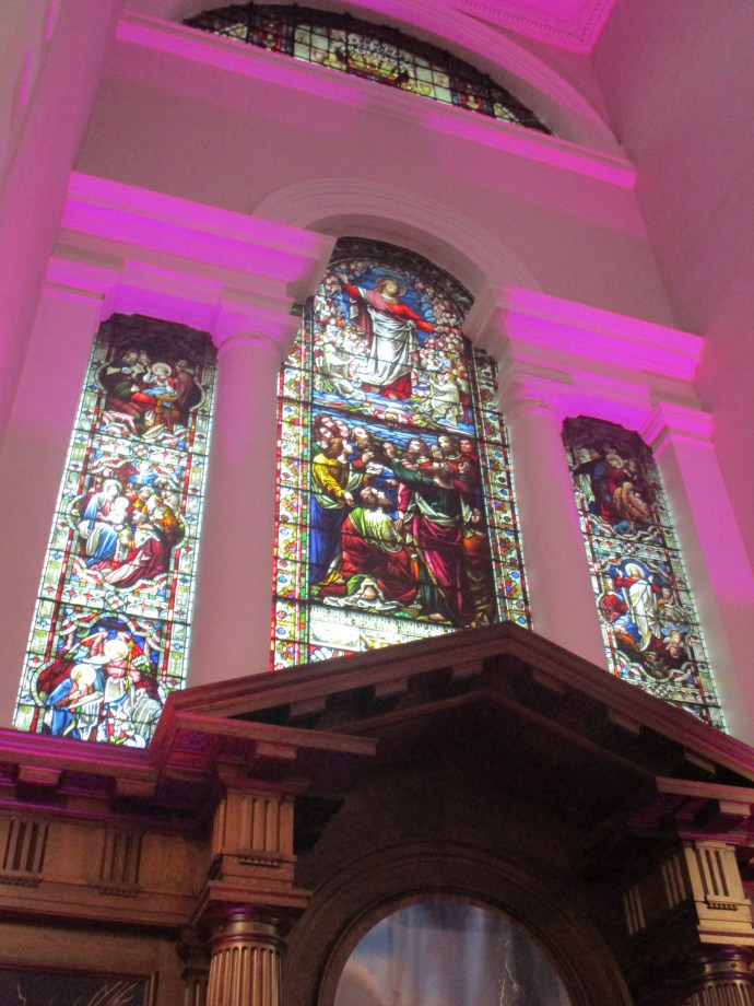 It was a very spacious white interior – the purple tinge comes from the fact that they were setting up for some sort of concert when I was there.