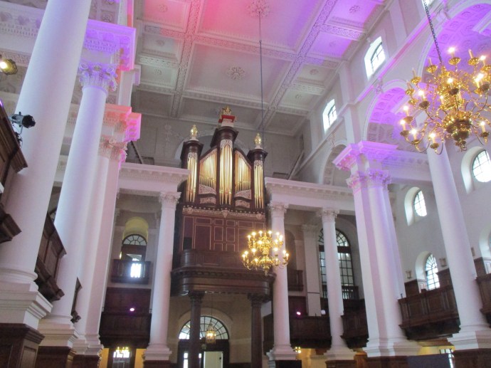 I wandered into Christ Church, Spitalfields mostly to shelter from a sudden downpour. Built between 1714 and and 1719 it was designed by Nicholas Hawksmoor who worked alongside Christopher Wren. It was one of the first “commissioners’ churches” which had been established by Act of Parliament in 1711 to build fifty new churches for London’s expanding population.
