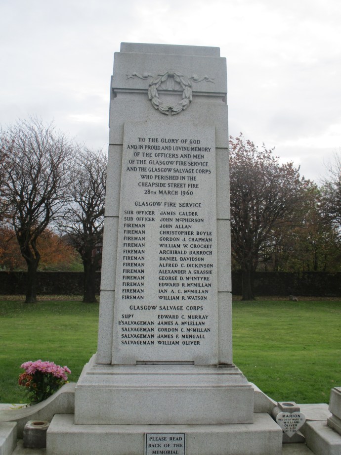 This monument commemorates members of the fire services in Glasgow who have lost their lives saving others.