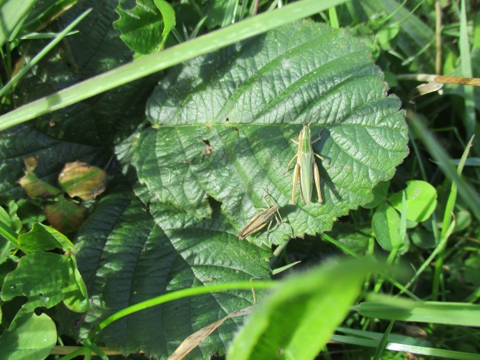 I was also determined to try and catch a look at a grasshopper, as although I’ve heard them plenty here and around the UK I’ve never actually seen one before, and somehow I managed to achieve this and even better to get a photo of two of them on the same leaf! The one on the right I’m pretty sure is a common green grasshopper and the other I’m unsure of – any grasshopper experts feel free to jump in in the comments.