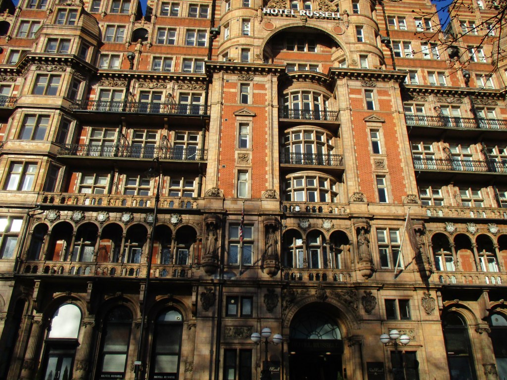 When I took photos of this building next to Russell Square it was the Hotel Russell but now it is the five star Kimpton Fitzroy London. Built in 1898 by the architect Charles Fitzroy Doll it was opened in 1900 and its terracotta decoration was apparently based on the Chateau de Madrid near Paris which was demolished in the 1790s.