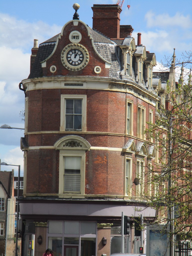 Built in 1877 by R C Sutton in red brick this was originally a chemist’s shop, then a restaurant and then a shop again. It is quite a striking building, designed to have a continuous shopfront with plate glass windows though right now the windows are boarded up and there doesn’t appear to be any business based there.