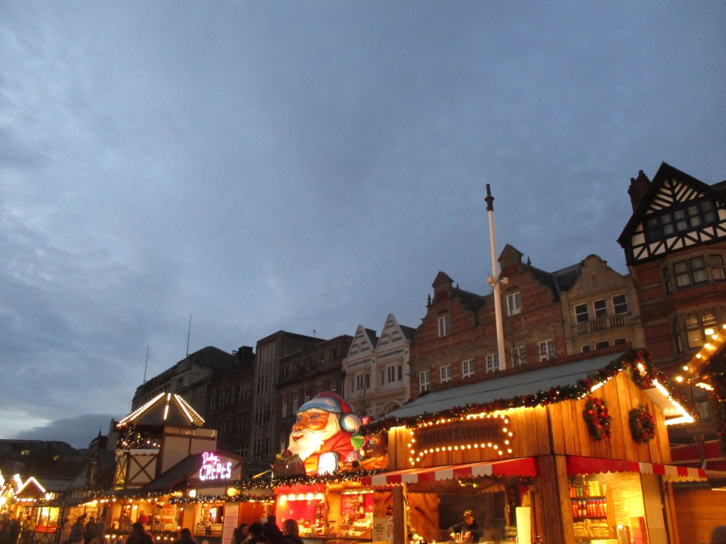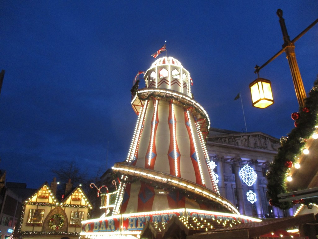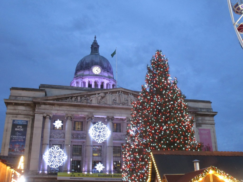 Last week I took a walk around the Christmas Market in Nottingham’s Market Square in order to take some photos. There’s no ice rink this year for obvious reasons and it’s also supposed to be more spread out than usual (after last year’s debacle), though it honestly didn’t feel any more spread out than usual to me. There are some familiar sights however such as the tree, the wheel, the helter skelter and the flashing snowflakes on the front of the Council House and the lights certainly do brighten up the gloomy evenings.