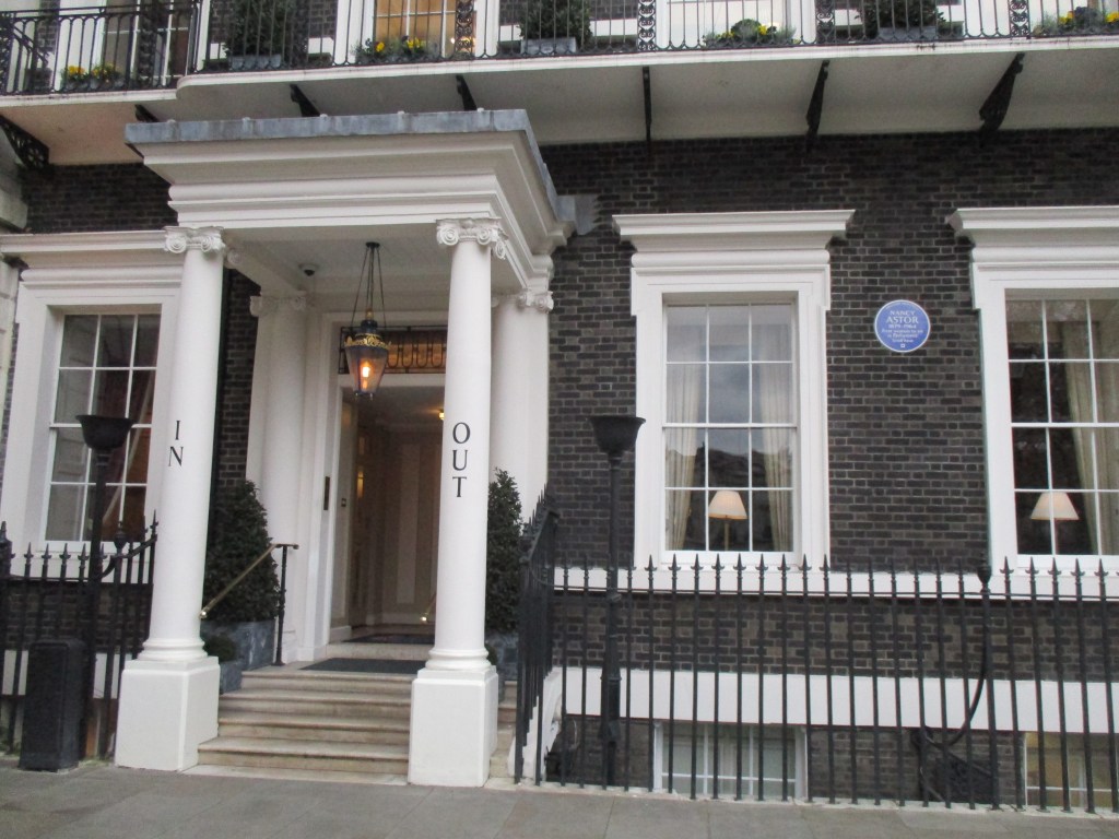 It came to be known as the In and Out Club because of the prominent signage that was replicated at it’s new location which between 1912 to 1942 had been the home of Nancy Astor, the first woman to take her seat as a member of parliament in 1919. (The first woman to be elected to the Commons was Constance Markievicz, in the general election of 1918. However as a member of Sinn Fein, she did not take her seat).
