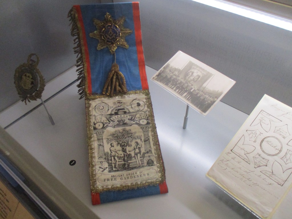 and this Ancient Order of Free Gardeners which looks very much like Freemason’s paraphernalia.