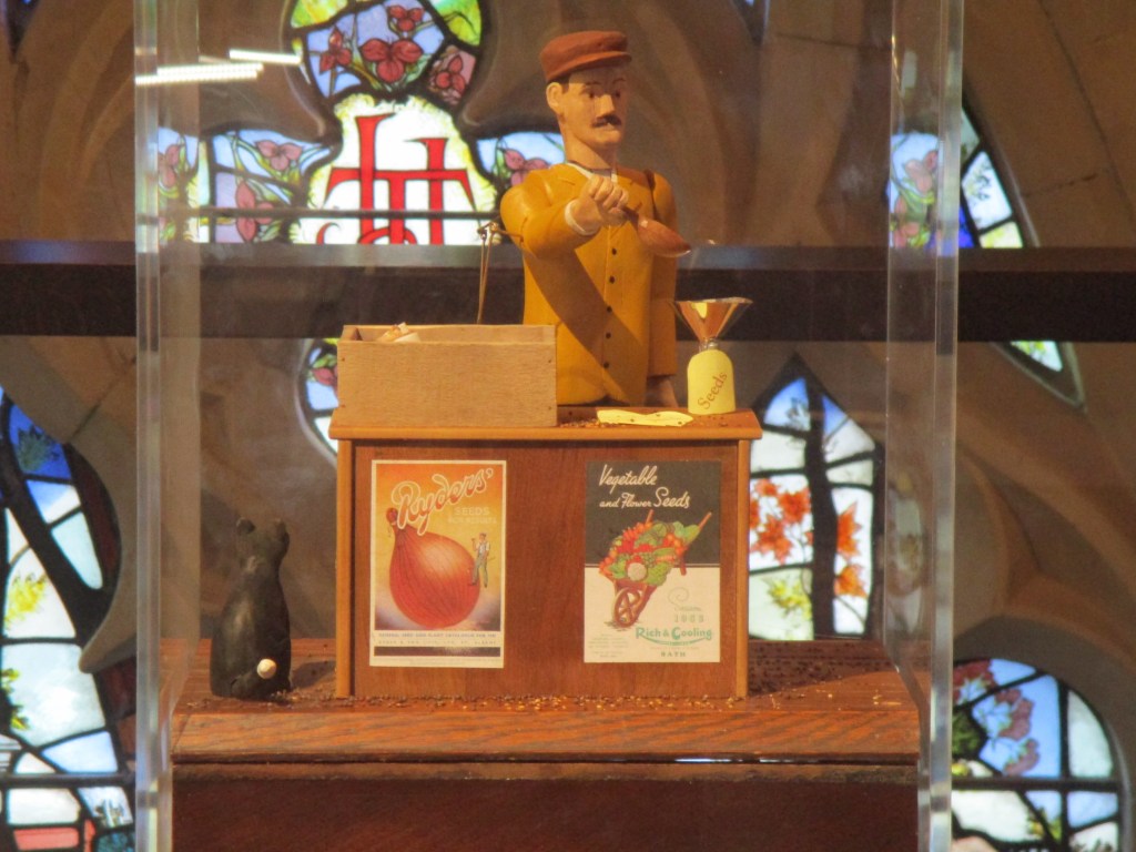 Some of the items on display in the permanent exhibition include this automaton – you could activate the man to measure out some seeds –