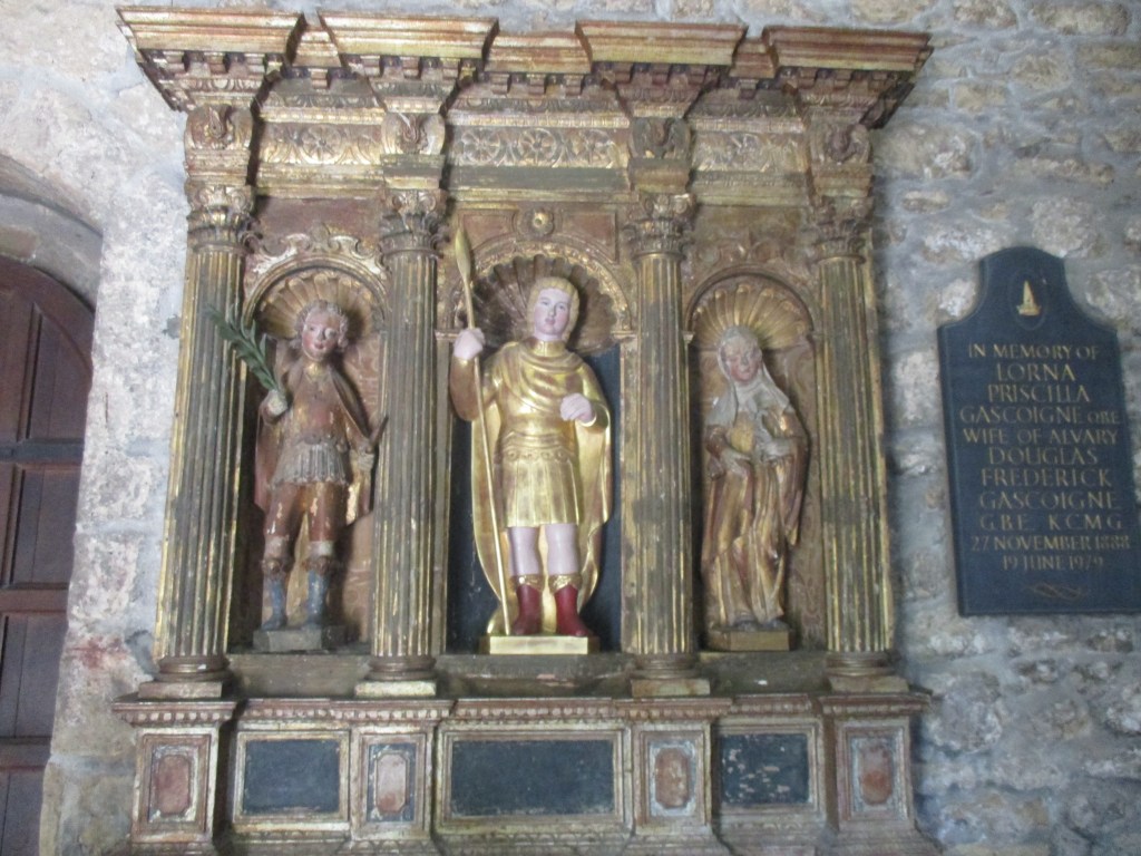 For such a small chapel there are some interesting things to see. What immediately stands out is this reredos dating from the 17th century and thought to be of German or Italian origin. It depicts St George in between two saints.
