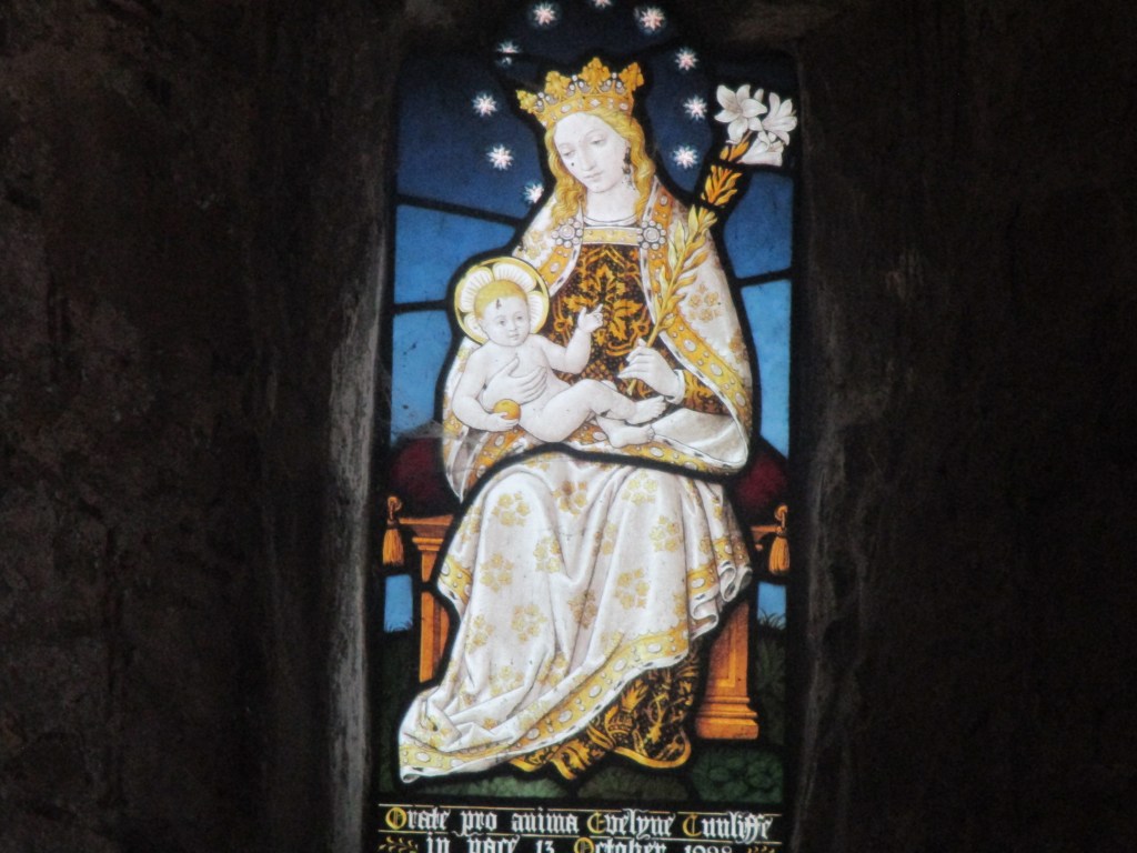 And there is a single stained glass window of Mary and baby Jesus, a memorial to Evelyne Cunliffe, sister to Colonel Gascoigne’s wife.
