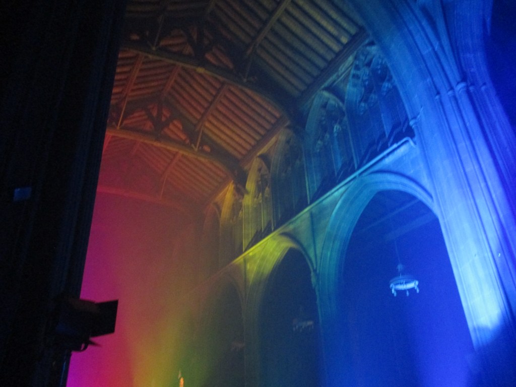 After a brief stop at Nottingham College (there was quite a queue forming so we decided to give it a miss) we headed over to St Mary’s Church which always puts on some of our favourite installations. This year’s event was called Re-Move and was a collaboration between visual artist Rebecca Smith and sound designer C J Mirra with young people across the county. These installations are always quite abstract and this was possibly more so than previous years so I’m just going to quote the official explanation: “The piece is created with input and sound recordings from Dr Tom Vickers, who over the last fifteen years has used a focus on borders and racism to examine how exploitation, oppression and resistance operate across fields including employment, volunteering, social work, social care and the media. Using an evolving loop of intricate light, sound and music, Re-Move is an engaging and abstract reflection on the journeys taken by those affected”.