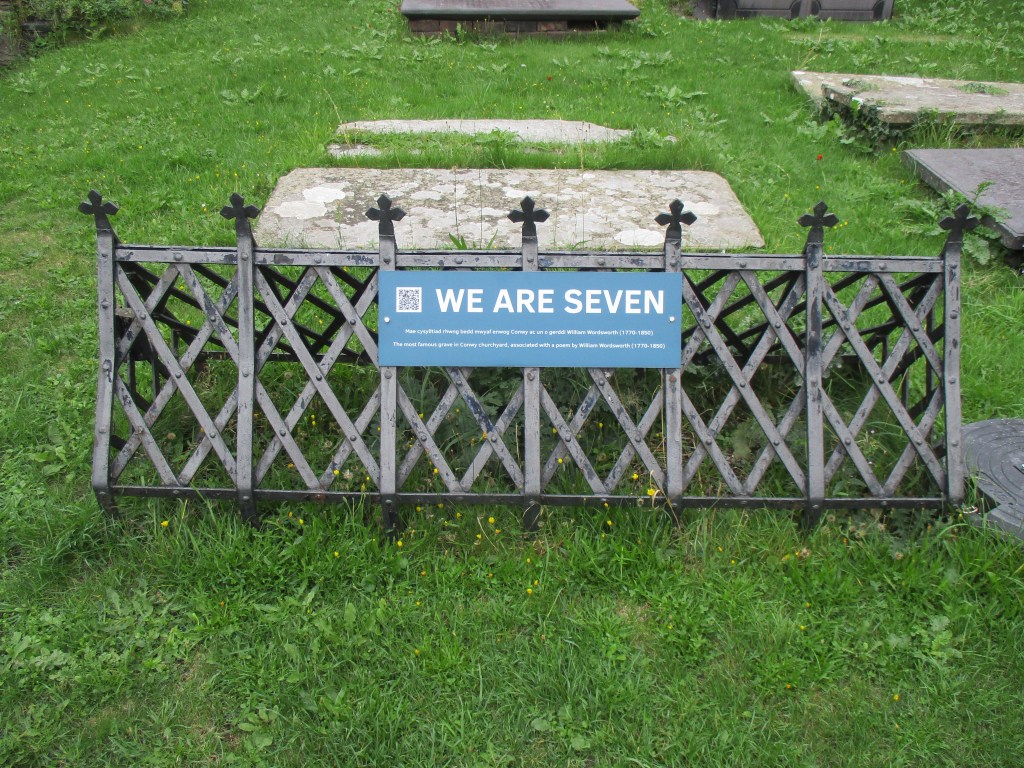 Outside the cemetery is well kept and acts as a short cut through the town as it has multiple entrances. One of the most famous gravestones is this one linked to William Wordsworth’s poem “We Are Seven”. Wordsworth wrote this poem after a visit to Conwy in 1798. People being what they are souvenir hunters broke off pieces of the tombstone that inspired his work, hence the iron cage which was added in the early 20th century to protect what was left.