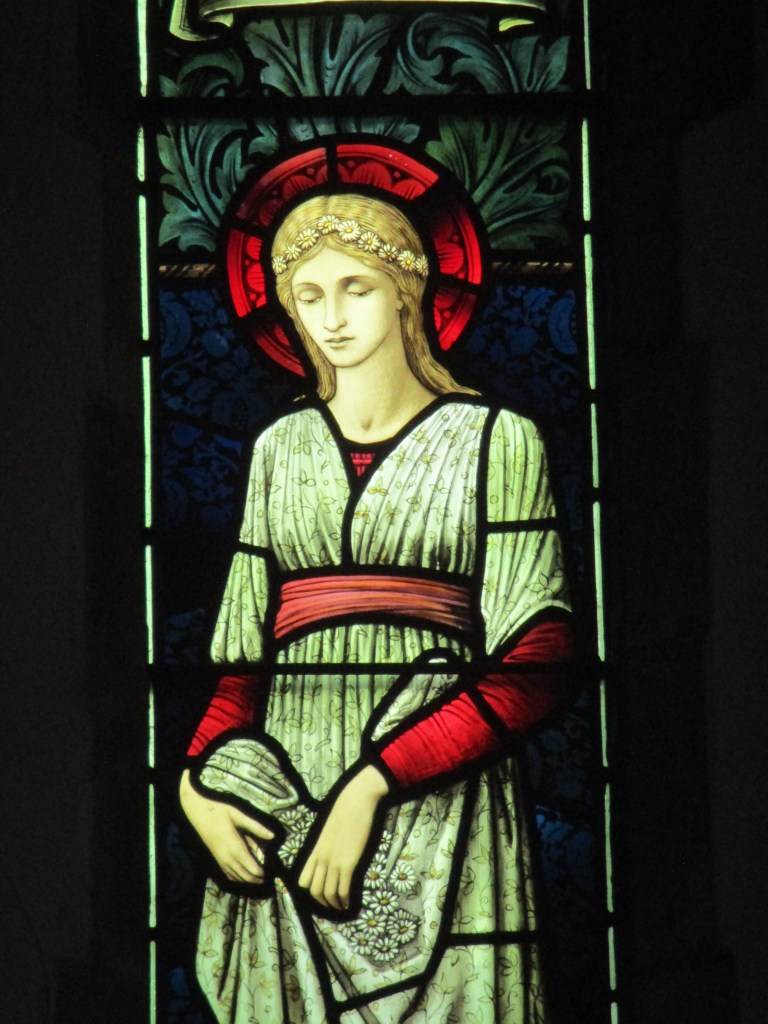 Regular readers will know how much I love stained glass windows and St Mary’s has some beautiful examples, including this lovely lady that was made in the workshop of the Pre-Raphaelite artist Edward Burne-Jones.