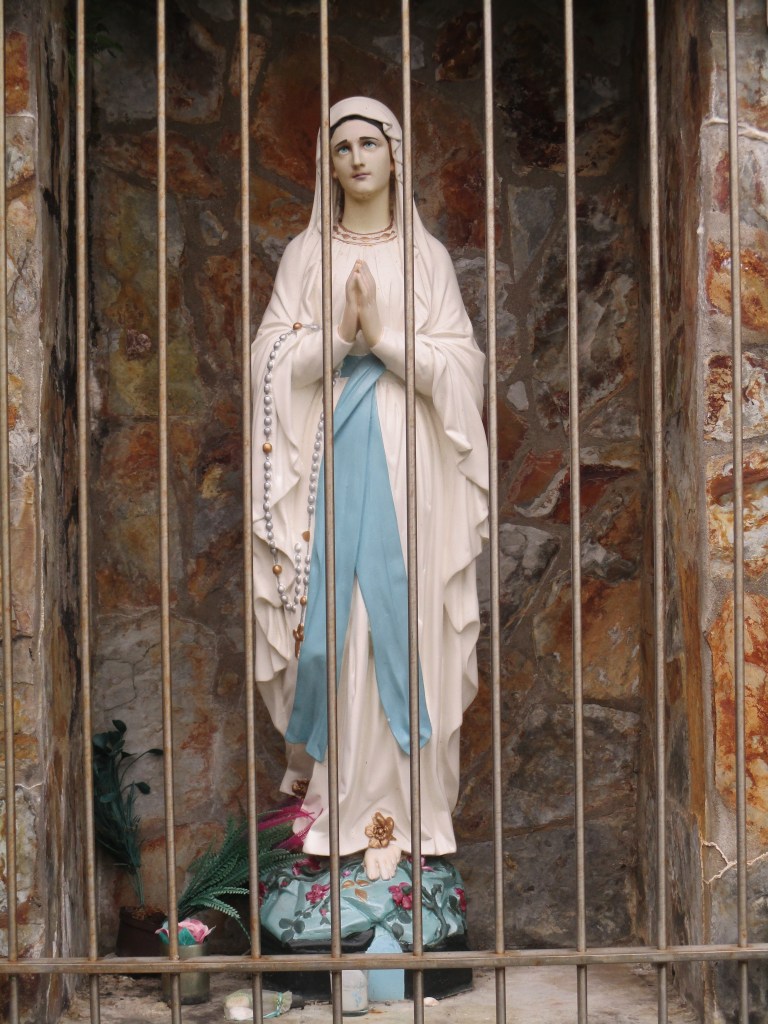 The church was built in 1916 but it was in the 1930s that it became a somewhat unlikely site of pilgrimage with this Lourdes Grotto being erected, and then the marble statues said to have been purchased from Italy.