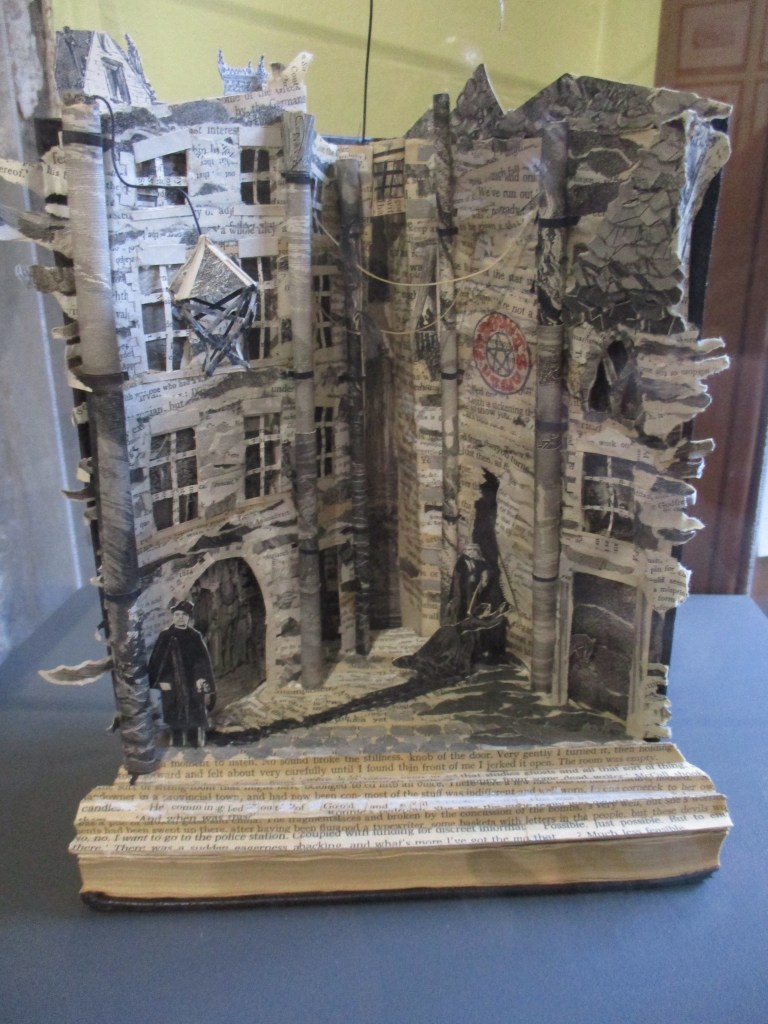 The collection includes personal items as well as books, manuscripts and portraits of the three writers but I have to say that photographing them was a bit of a challenge due to the slightly dark atmosphere used to protect items from sunlight damage. One piece that did stand out was this artwork anonymously gifted to the museum in 2011. It’s made from Ian Rankin’s Hide and Seek and Robert Louis Stevenson’s The Strange Case of Dr Jekyll and Mr Hyde.