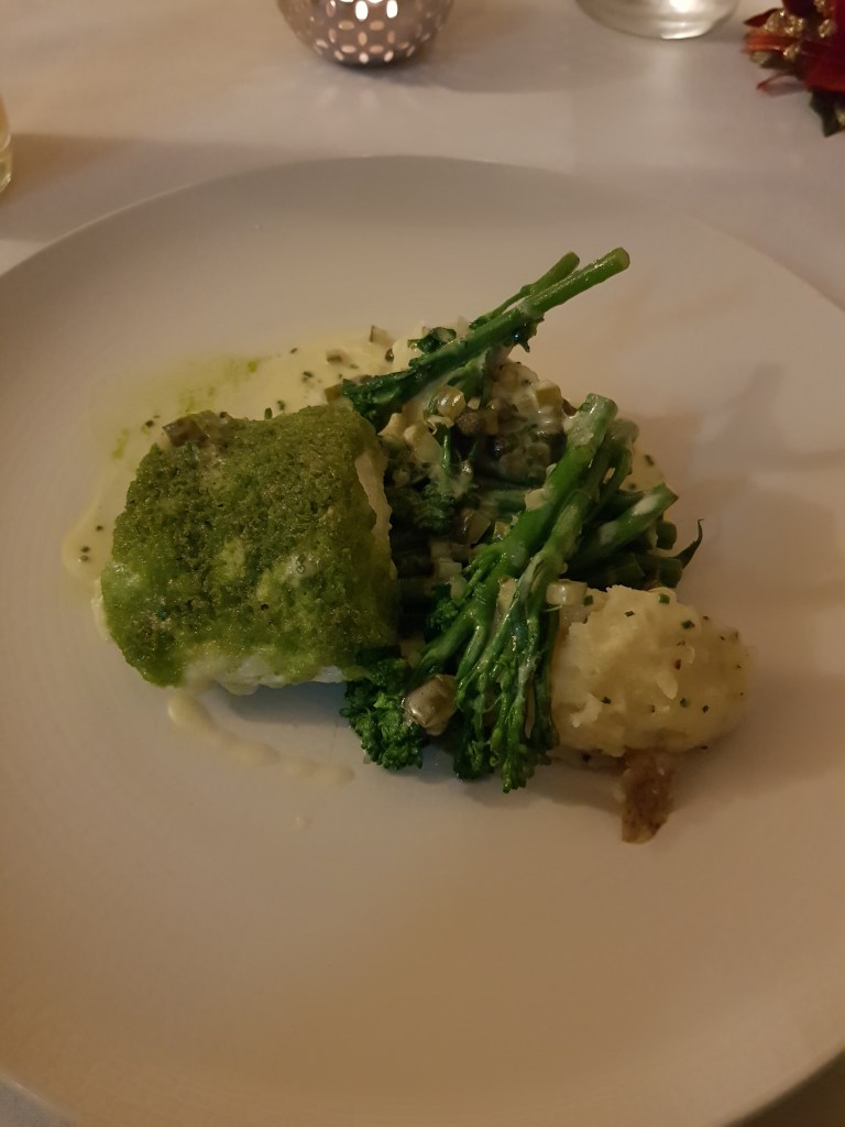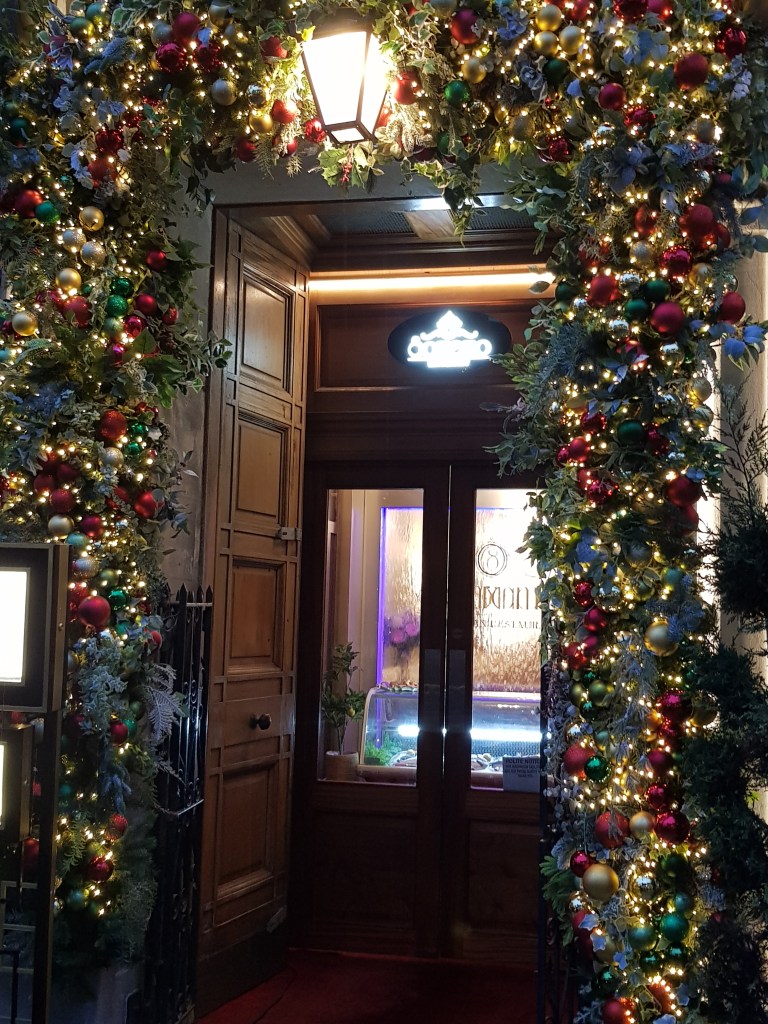 This year we decided to stay over in Bath one night in order to do the Roman Baths however we were travelling when Storm Darragh was approaching and that evening got the (extremely loud!) emergency alert on our phones that the storm was going to cause significant disruption and decided to head home the next morning rather than do the Baths and leave at lunch time as had been our plan. (The Baths are letting us use our tickets next year so expect a post about that sometime in the spring). The hotel we stayed at however was great – Bailbrook House Hotel just outside Bath city centre – all decked out for Christmas and very comfortable. We ate dinner in the restaurant which was excellent, had a drink in the bar and had a fabulous breakfast the next morning so we were very satisfied even if we ultimately cut our trip a bit short.