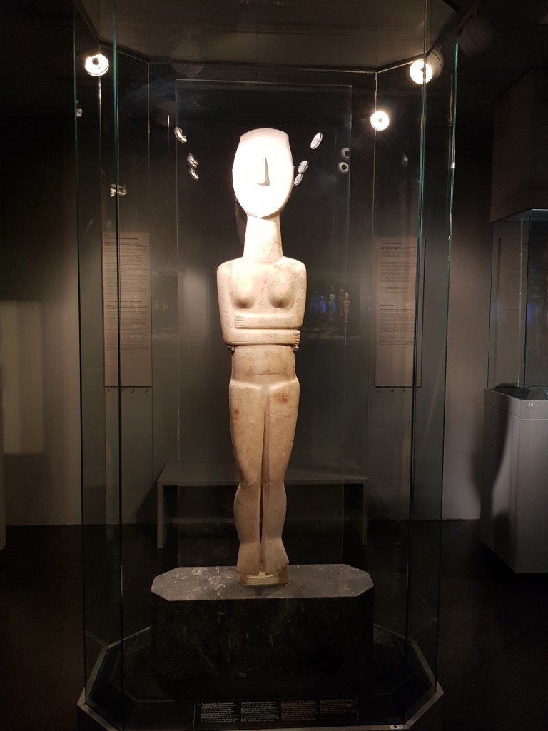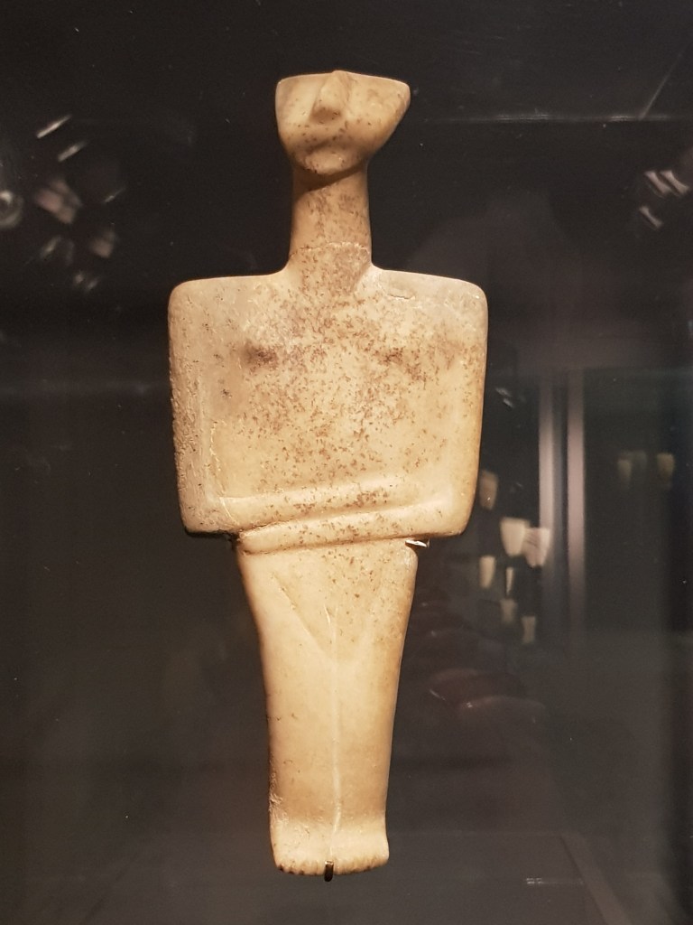 After I’d visited the Benaki Museum I headed practically round the corner in order to go to the Museum of Cycladic Art. Cycladic refers to the islands of the Cyclades in the Aegean Sea and the culture dates from roughly 3200 BCE to 1050 BCE. The collection was brought together by Nicholas Goulandris, a shipping magnate and his wife Dolly. It is one of the most complete collections of Cycladic art in the world.