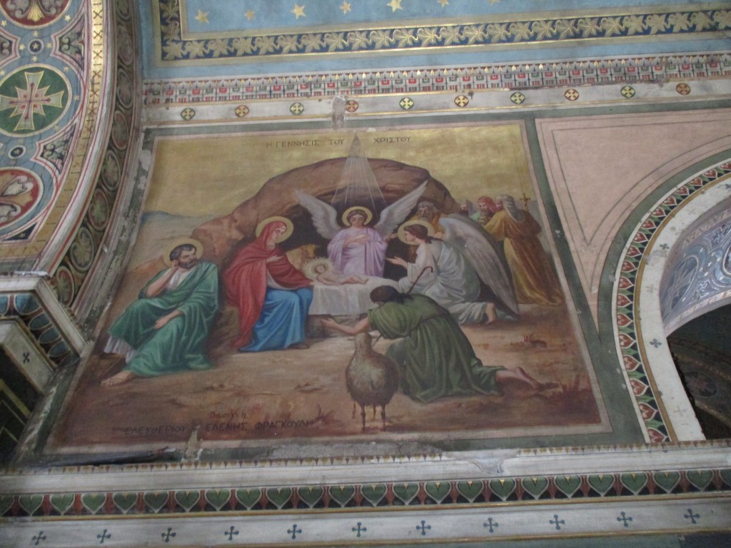 Dating to the 11th century the interior, like all the churches I visited in Athens, are chock full of mosaics and frescoes on every conceivable surface. It was built over an ancient Greek temple, possibly one dedicated to Athena.