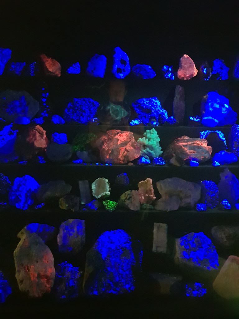 One of the areas that really delighted me was the minerals gallery, particularly the display below in the ultraviolet gallery triggered by motion sensor so one moment the display is in darkness, the next it looks like this.