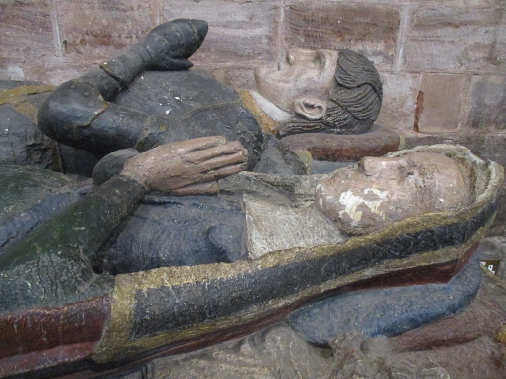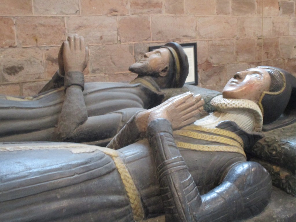 There are also an awful lot of tombstones and monuments. One of those is of Richard Onslow and his wife Katherine. Richard was speaker of the House of Commons during Elizabeth I’s reign. Shrewsbury has been party to two parliaments – the very first parliament where the “commons” had a legal standing took place here in 1283 under Edward I. Another parliament summoned by Richard II took place here in 1398.