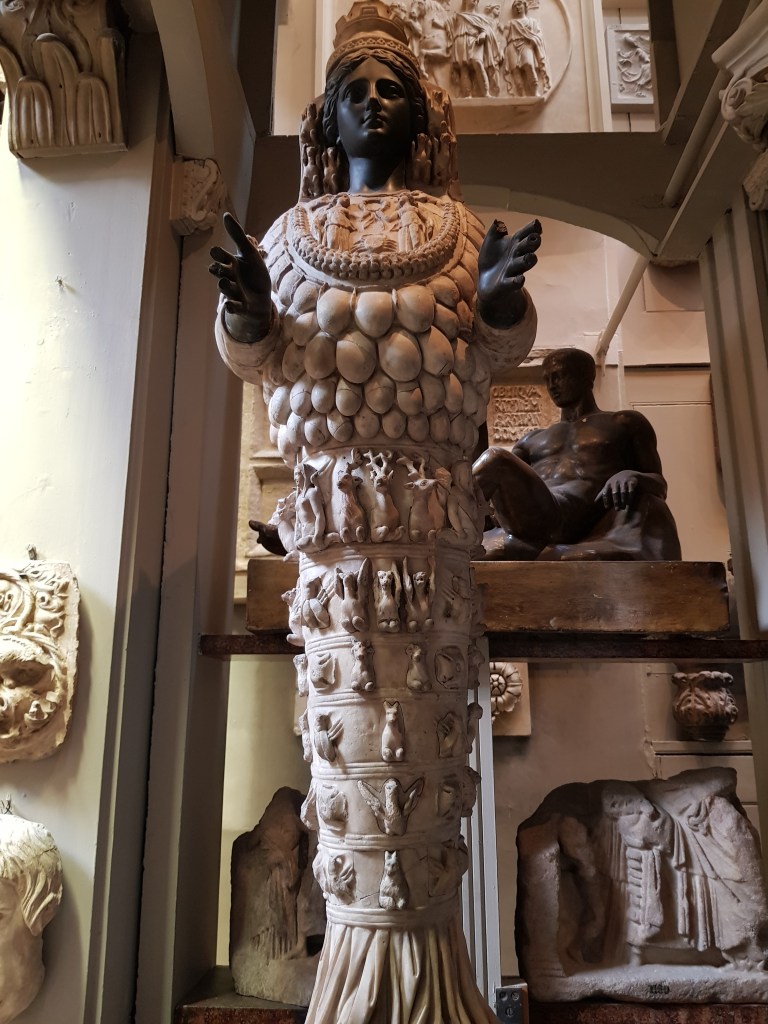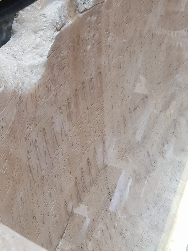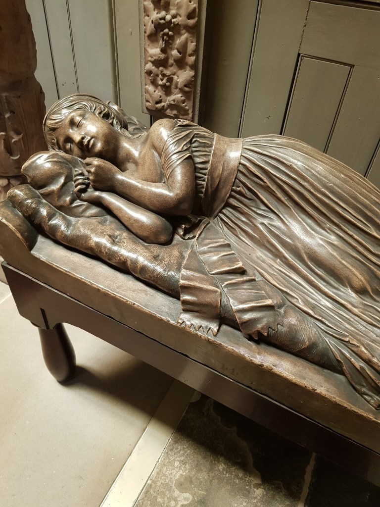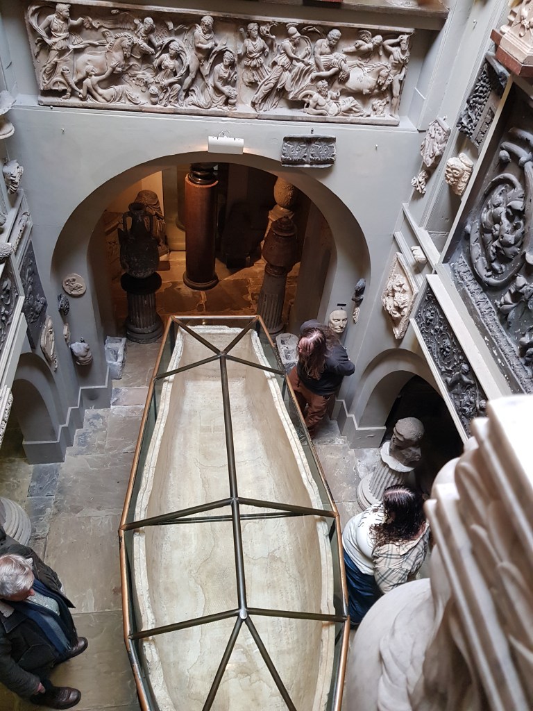 One of the most surprising items in the house is this sarcophagus, built for the Egyptian Pharaoh Seti I – Seti’s son was Ramses II. His coffin and mummy was placed in this sarcophagus on his death in 1279 BCE and placed in a tomb in the Valley of the Kings in Egypt. Carved into the alabaster surface are hieroglyphics to help the Pharaoh pass through the underworld and reach the afterlife, though they proved a little tricky to photograph.