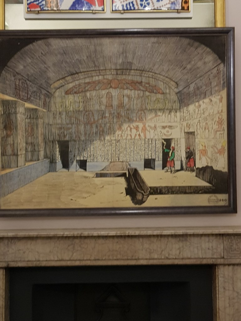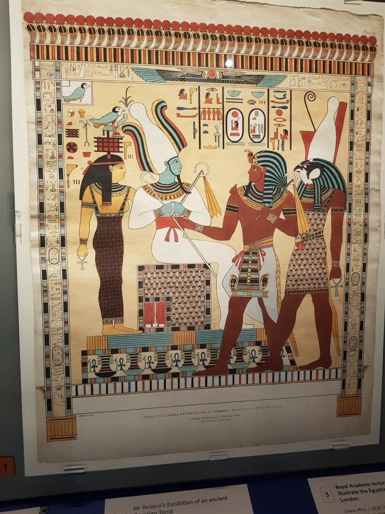 The museum also has temporary exhibitions – when I was there the exhibition was Egypt: Influencing British Design 1775-2025 which had some lovely artwork on display like this drawing to illustrate the Egyptian Hall in Piccadilly where Belzoni recreated the rooms from the Tomb of Seti I in 1821.