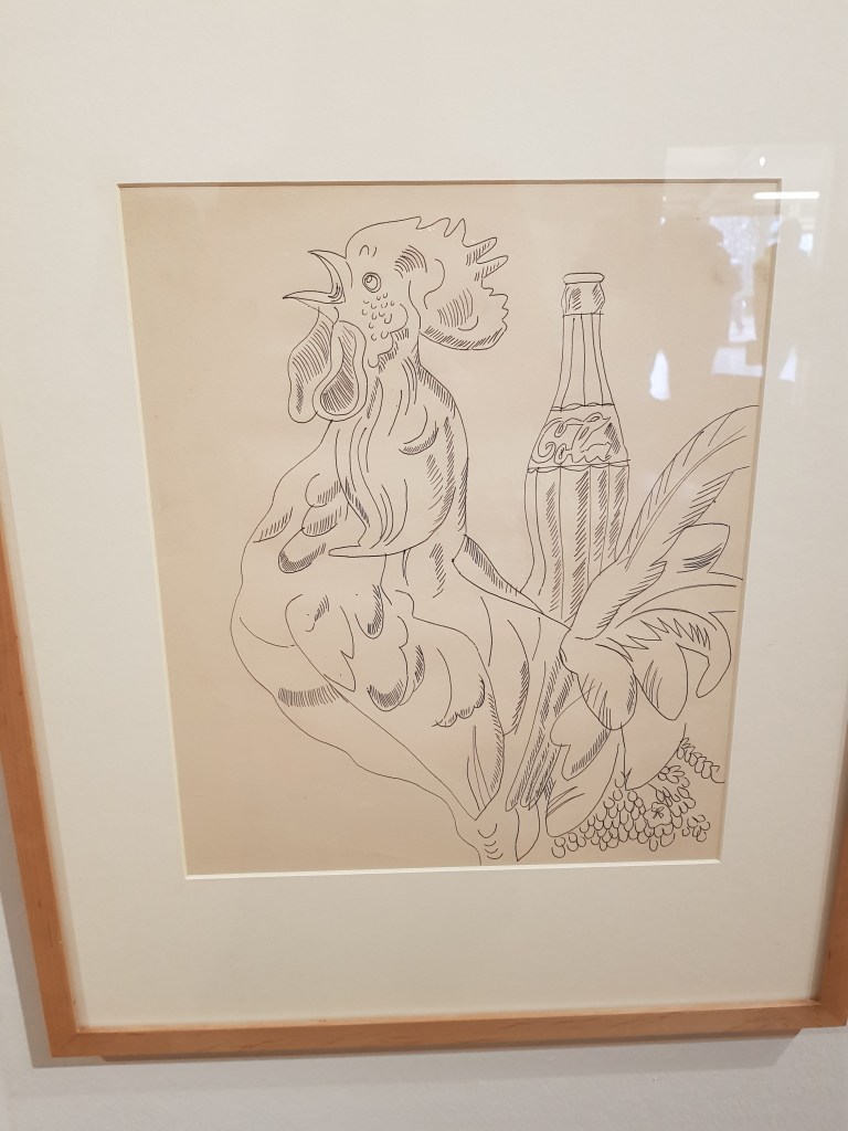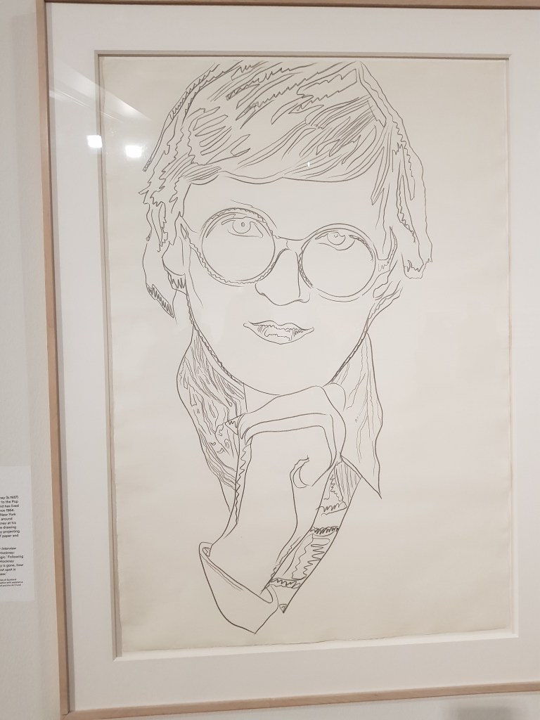 One of my favourites included this sketch of artist David Hockney, another proponent of the Pop Art movement. It’s likely this was created by drawing the outlines from a photograph projected onto the paper – Warhol used many techniques like this as well as mass producing his artworks with screen prints etc, merely changing the colours he used as with the Marilyns.