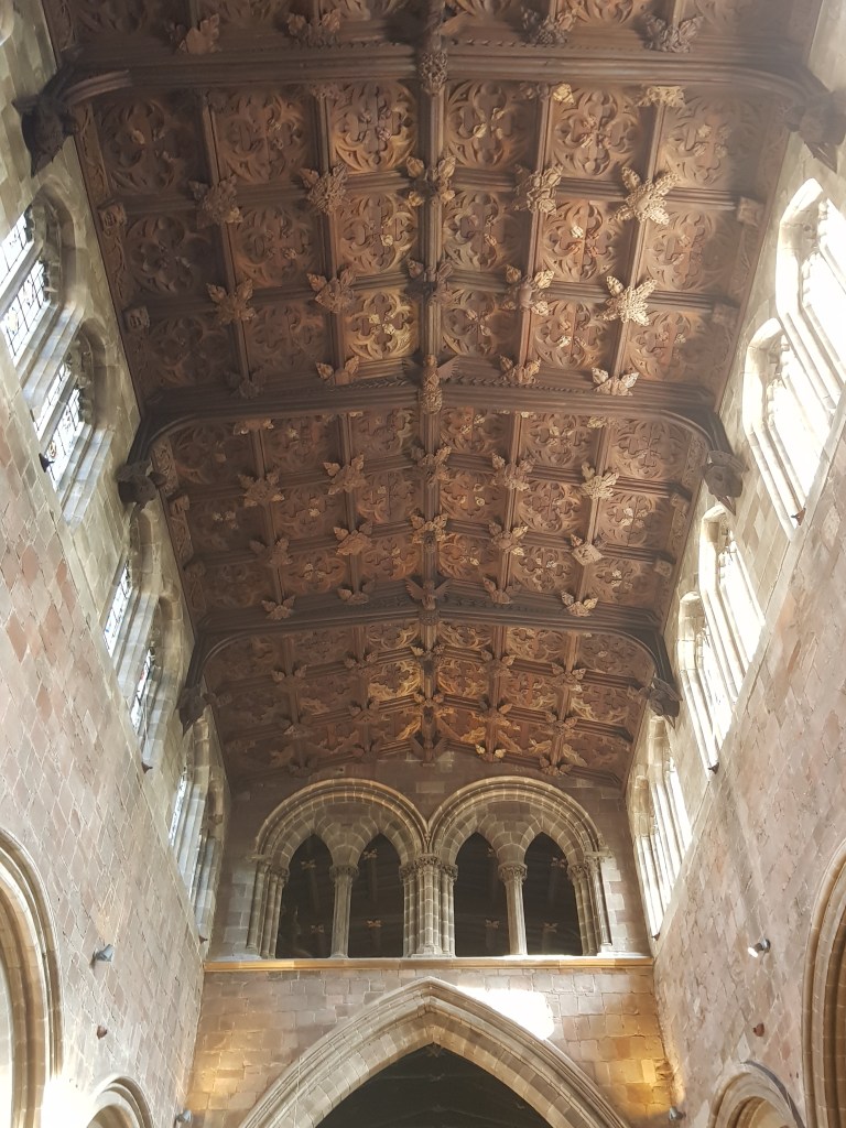 St Mary’s proved to be the most welcoming of the churches I visited in Shrewsbury, kept open daily by volunteers. I was greeted as I entered by a very enthusiastic volunteer, whose name I never got, who offered to give me a brief rundown of the church which I really enjoyed and told me which parts of the church to take a closer look at. The church is pretty popular because the day before while dining out at a restaurant I got chatting to a couple at the next table and they also told me what to look out for at St Mary’s.