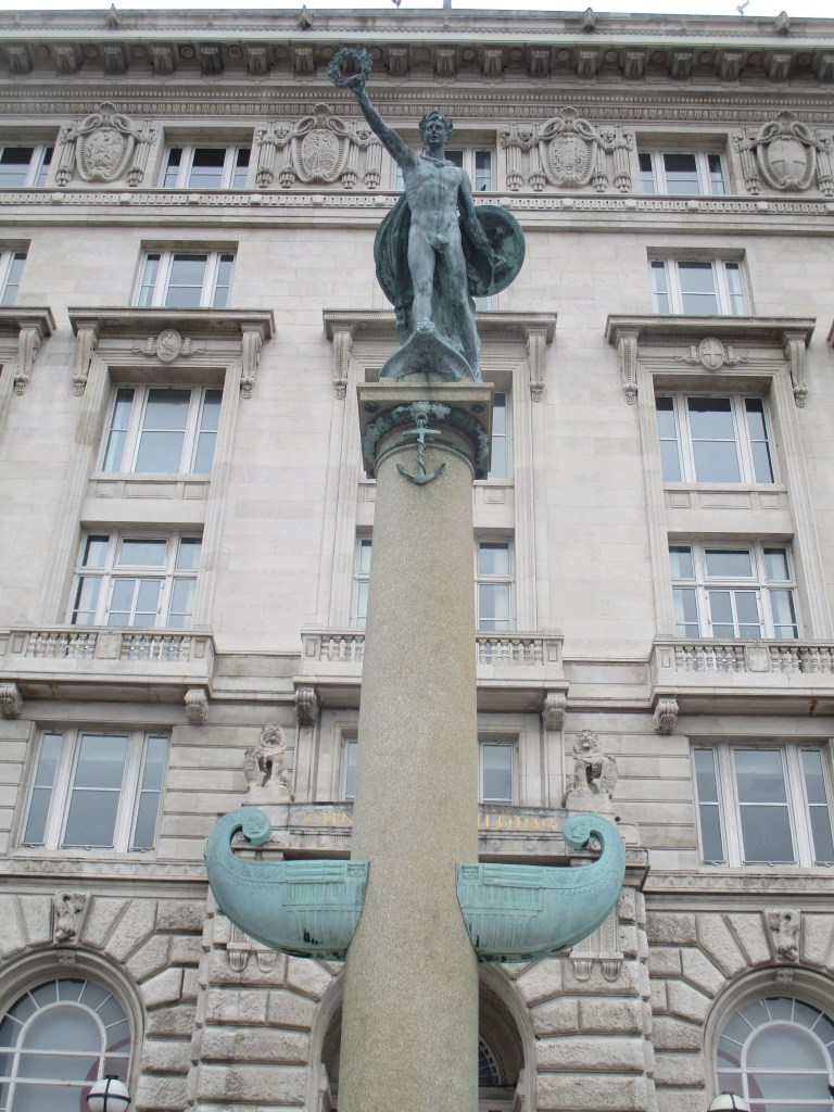 The Cunard War Memorial is on the west side of the Cunard Building and is a memorial to Cunard employees killed during the First World War, and then the Second. Designed by the architect Arthur Davis it was built around 1920 although it wasn’t officially unveiled until the next year by the Earl of Derby.