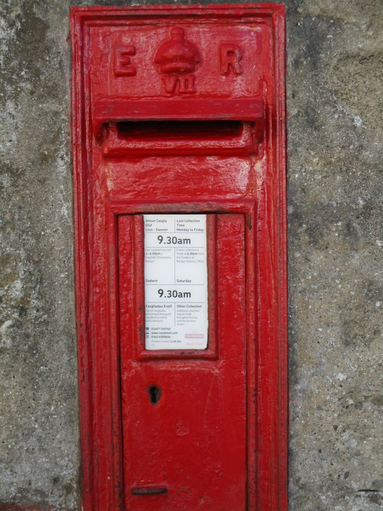 This is an example of a wall mounted post box; this type were introduced in around 1857 as a cheaper alternative to the pillar box style for small towns and rural areas. They were either mounted into existing walls, as this one was, or into purpose built brick pillars.