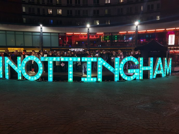 Another February, another Light Night. This is always a good event to go to every year and as ever the city centre was packed with people from all ages. For this year as well the event was spread over both the Friday and the Saturday night, though I only made it out on the Friday. There’s never enough time to see everything so we did a loop from Trinity Square to listen to some of the choirs, round through Market Square to the very impressive art works projected onto the Council House, over to St Mary’s Church in the Lace Market and then up to Nottingham Contemporary art gallery. A few of my favourite light displays are below.