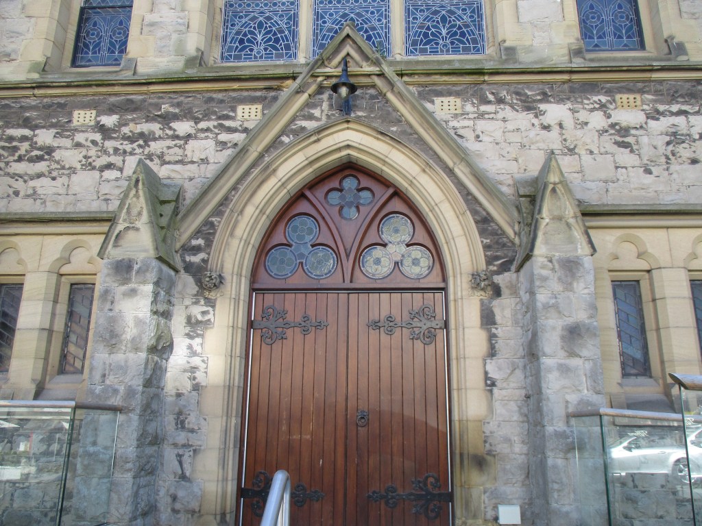 Inspired by The Red Phone Box Travels posts about doors, here are some interesting doors found around Llandudno in Wales. The first picture is of a side door to Gloddaeth Church which has some pretty stained glass windows.