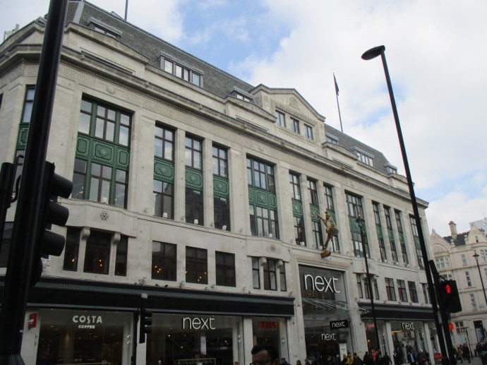 Currently a Next store this used to be the Bourne and Hollingsworth Department Store which moved to Oxford Street in 1902 though it was built in 1894. The art deco remodelling happened in 1928. It closed in 1985 during which time the building was also known as the The Plaza Oxford Street.