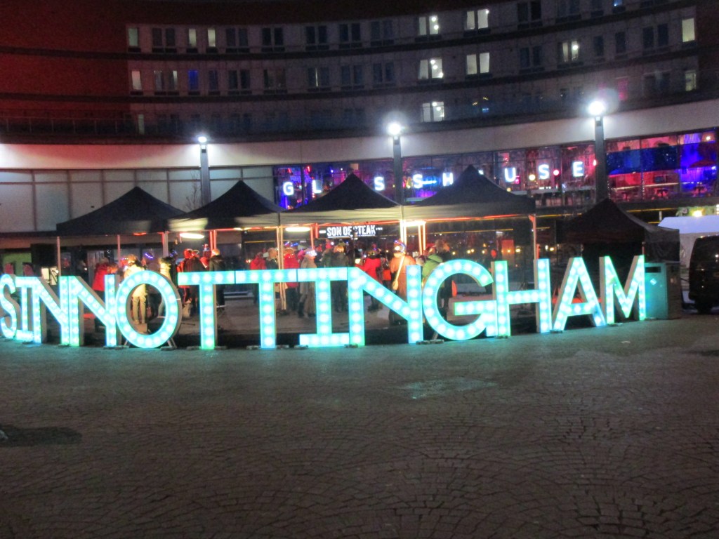 Another February, another Light Night event. This is a real highlight of the arts calendar in Nottingham and as ever there was so much going on that we always have to be quite selective about what we visit. We started off as we have before at Sneinton Market which had an interesting light display in a box named Geist, the design of which is based off of a neutrino or “ghost particle”.