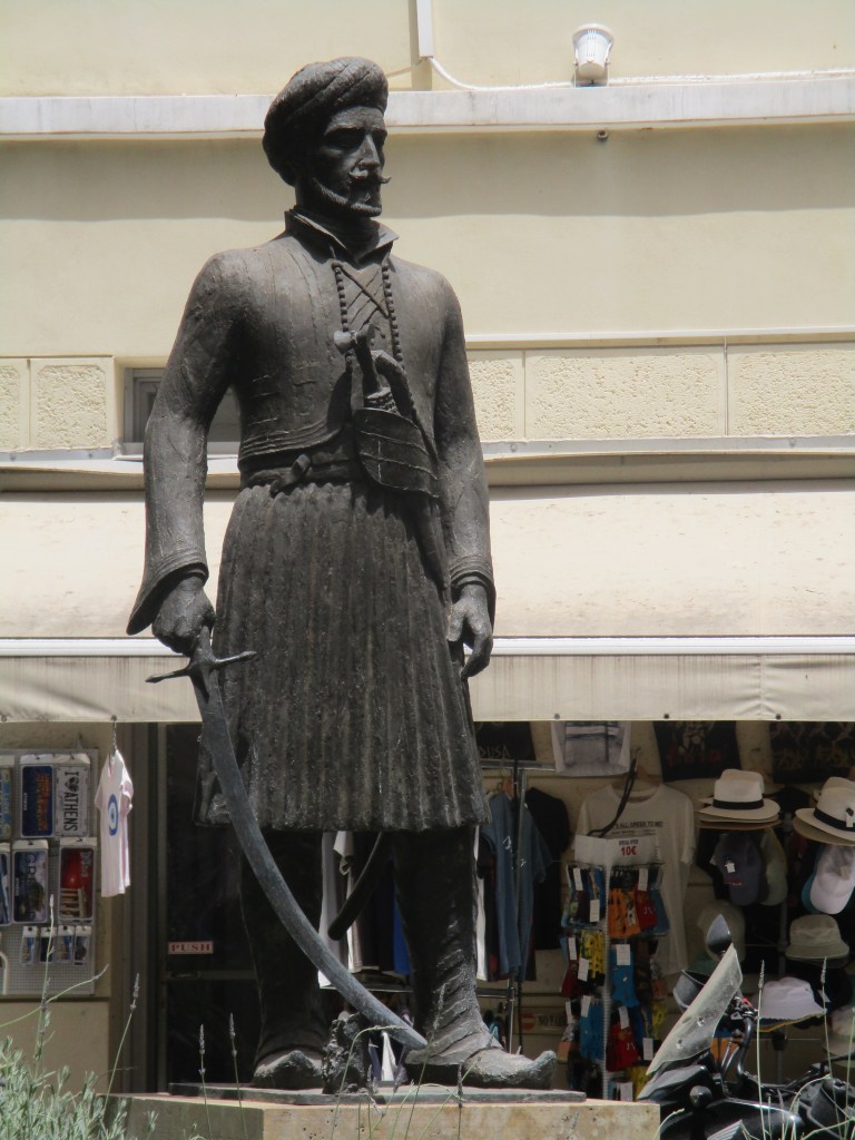 As ever, whenever I’m in a new city I take pictures of anything that strikes me as interesting and then I go and research it later. This post rounds up all those random statues I photographed around Athens. The first is that of Yannis Makriyannis. Located not far from the southeast entrance of the Acropolis, though tucked away a little bit in the corner of a small grassy area, this statue is of one of the men who fought for Greek independence in the 1820s. He also is known at least in Greece for his memoirs which were notable for being written in Demotic Greek, the standard spoken language of modern Greece. It translates as language of the people.